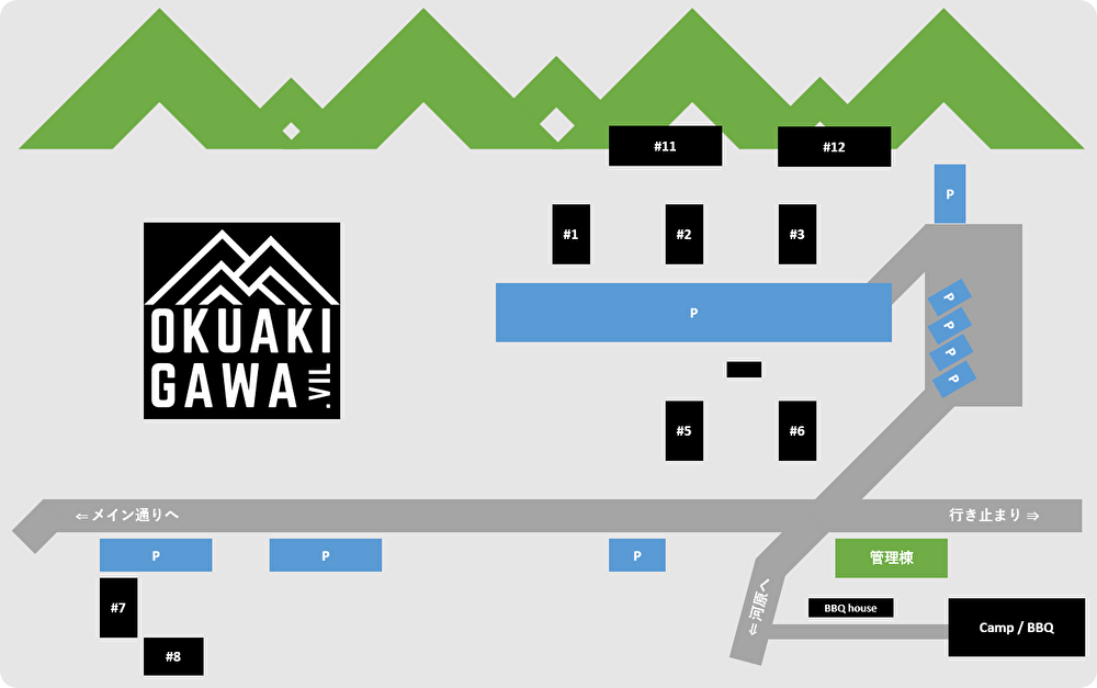 敷地内には、貸切コテージ9棟(大型×2、標準型×7)、貸切キャンプ場(貸切BBQ可)があり、